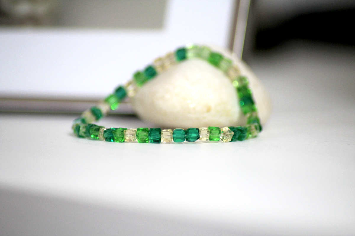 Dieses Armband erinnert an das sanfte Leuchten eines Waldes im Sonnenlicht. Funkelnde Glasperlen in verschiedenen Grüntönen – von zartem Lindgrün bis tiefem Smaragd – spiegeln das Licht auf zauberhafte Weise wider und bringen Frische und Ruhe ans Handgelenk. Zwischen die Grüntöne mischen sich feine, fast transparente Perlen in hellem Honiggelb – wie Sonnenstrahlen, die durch Blätter tanzen.