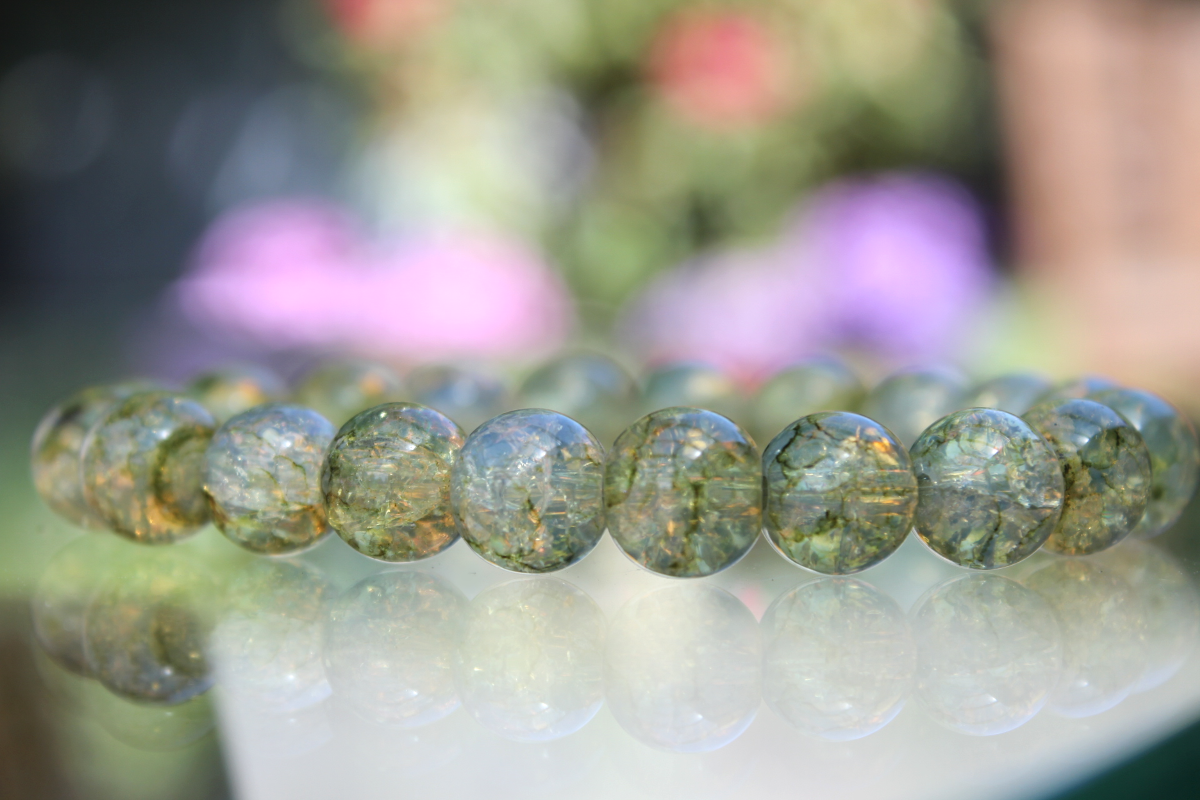 „Sommerwald“ fängt genau dieses Gefühl ein – mit glasklaren, grün-goldenen Perlen, in denen sich Licht wie in einem Tautropfen bricht. Mal hell wie frischer Farn, mal tief wie alte Bäume – und immer ein bisschen wie ein geheimer Ort, den nur du kennst.