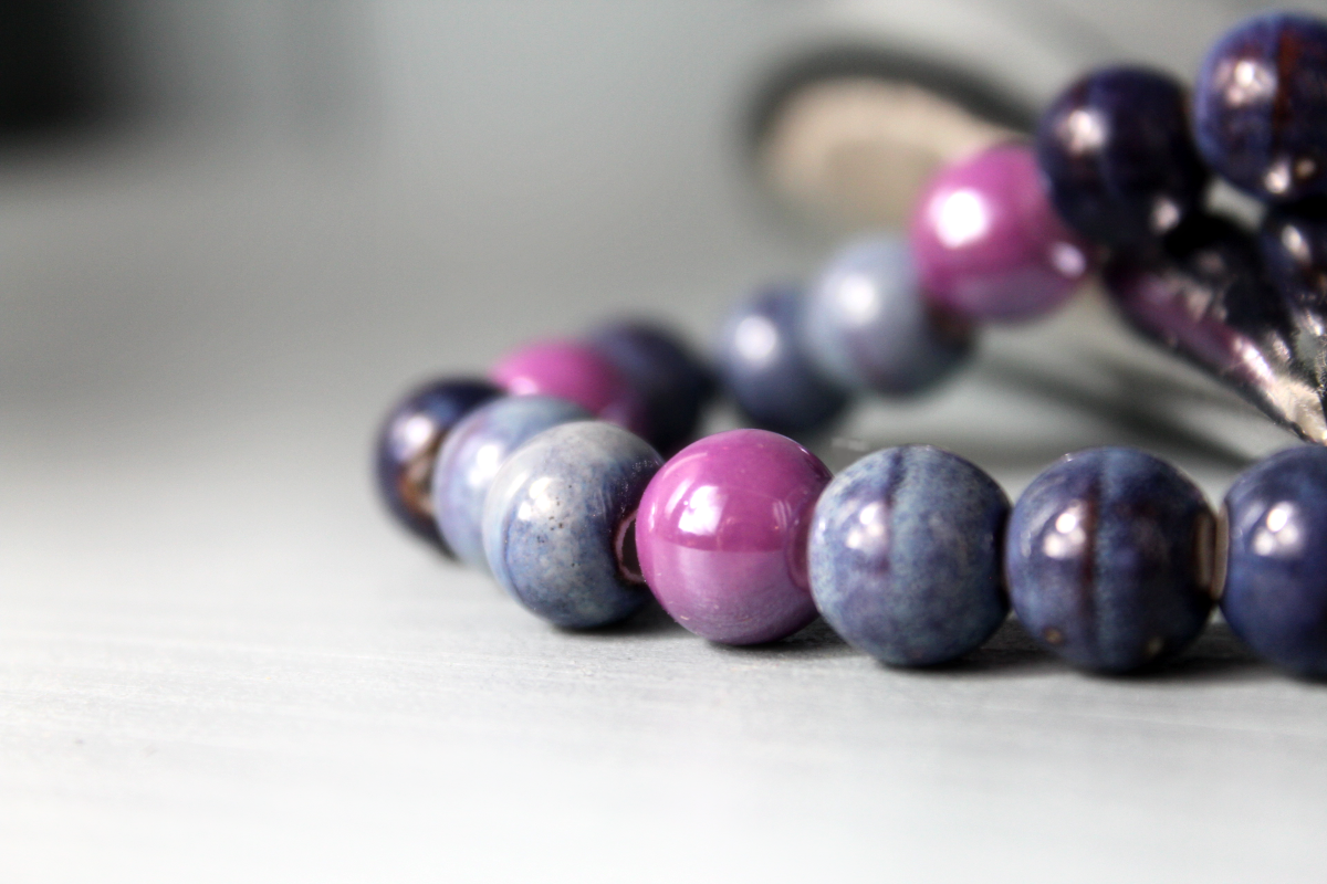 • Einzigartige Keramikperlen in Blau- und Lilatönen