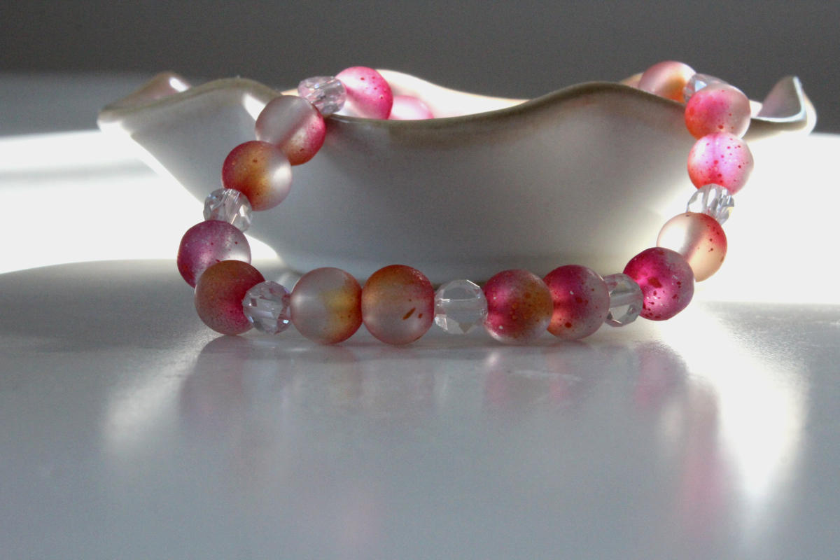 Zart, lebendig und voller Leuchtkraft: Dieses handgefertigte Armband aus hochwertigen Glasperlen verbindet zarte Farbnuancen mit edlem Glanz. Jeder einzelne Perlenstrang wird in liebevoller Handarbeit gefertigt und ist damit ein echtes Unikat.